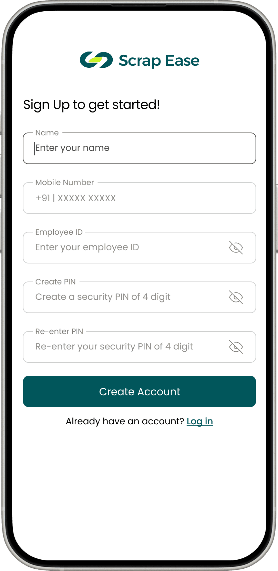 Replaced email field with mobile number as the target group are more familiar with this. Added employee ID & PIN for secure login of employees.