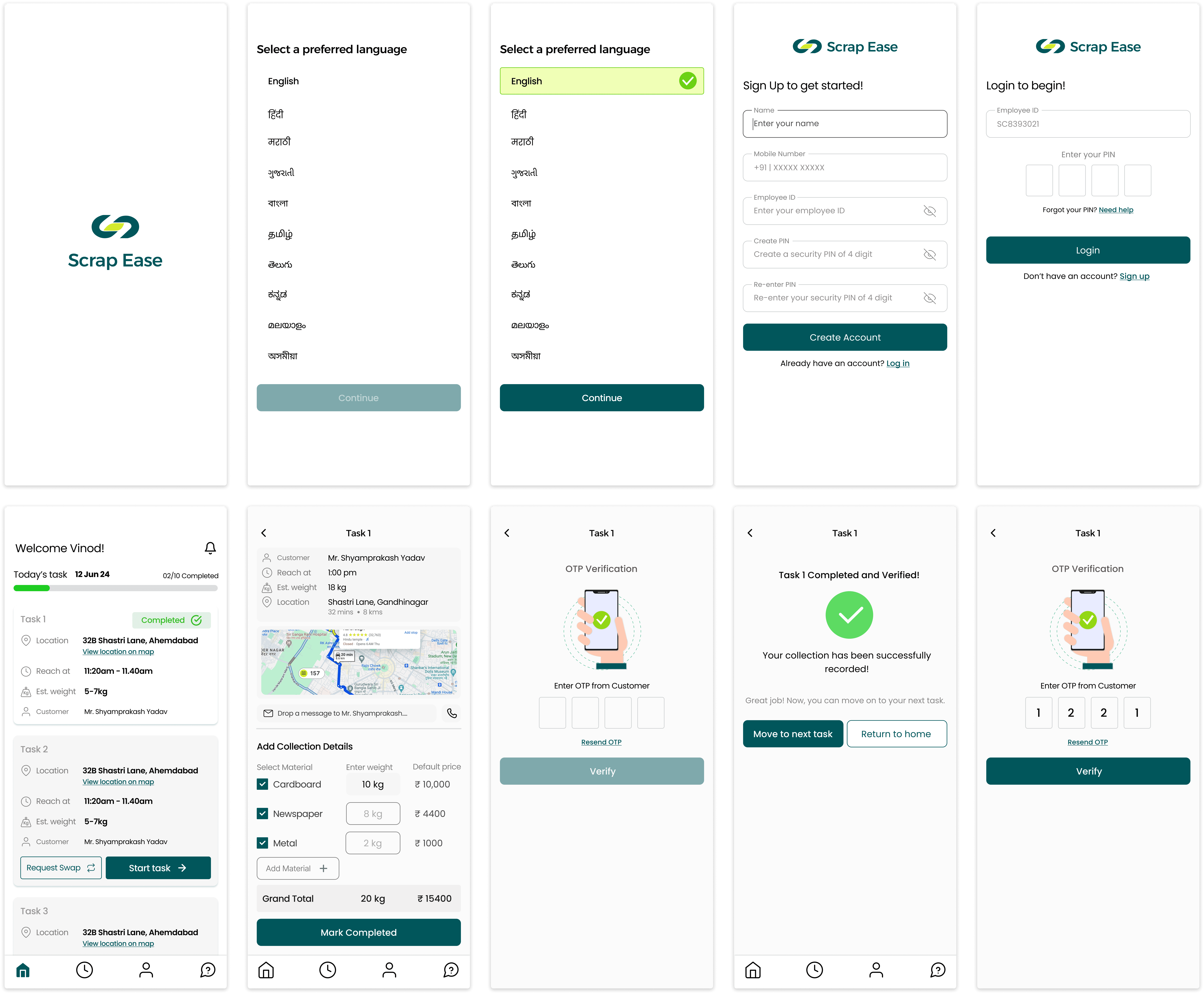 Mapped each stage of a scrap dealer’s routine from morning pickups to end-of-day summaries and mirrored that structure in the app’s navigation.